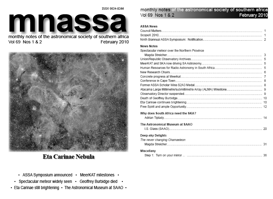 MNASSA DOWNLOAD PAGE Monthly Notes of the Astronomical Society of Southern Africa